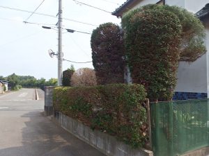 ブロックから出てしまった枝も切り落とし、二階まで伸びてしまった植木も丈をつめて