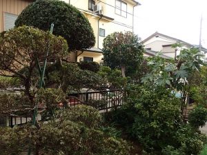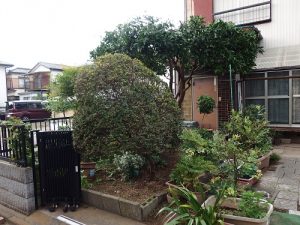 植木が密になり過ぎて後ろの建物見えない状態です。
