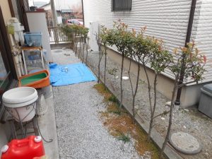 まずは、植木をナンテンを残してすべて伐採しました。