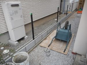 今回は、フェンス工事をおこないますので、フェンスを取り付ける柱をきっちりと設置いたします。