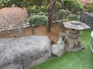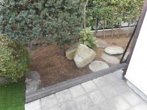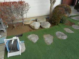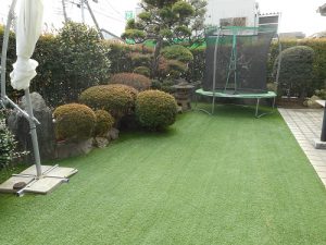 お庭に敷かれた人工芝や、草に覆われた飛び石も除草をすればこそ意味を成します。