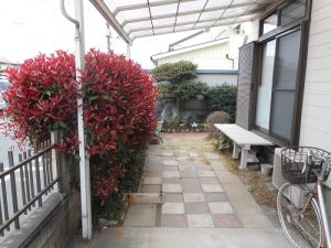 植木の高さを低くし、枝を透かす事で圧迫感をとり、お庭全体に風がはいるように剪定しました。