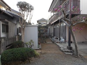 全体的に植木を小さく剪定し、除草も手刈りで全面おこないました。