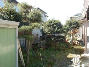 全体的に植木を小さく剪定し、除草も手刈りで全面おこないました。