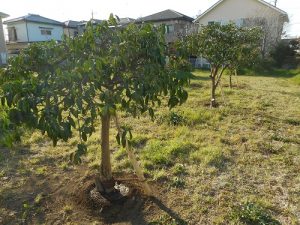柿・ミカン・ゆずなどの植木を掘り取り他の場所に移植していきます!!