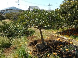 柿・ミカン・ゆずなどの植木を掘り取り他の場所に移植していきます!!