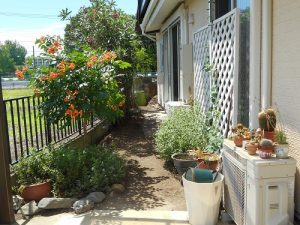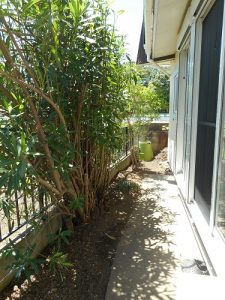 奥にみえるキョウチクトウは枝を抜き過ぎず、目隠しの役割を残して