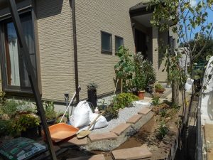 O様には、引き続きお庭にある材料を利用して歩行通路を作りたいと、追加ご依頼いただいて