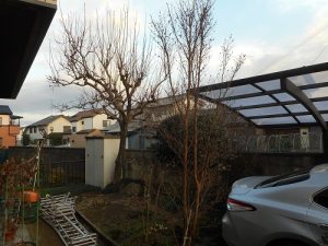 O様のご依頼は、主にハナミズキの剪定と裏庭の高木柿やその他の植木剪定のご依頼です!