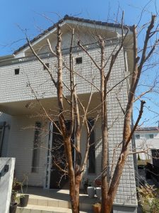 落葉している段階で、できるだけ丈をつめ不要な込み合った枝を取り除く剪定をおこないます!