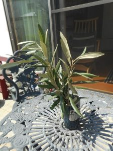剪定後のオリーブ葉も、テラスのテーブルの上で一工夫!