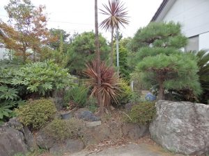 続いて玄関前の植木剪定です。
