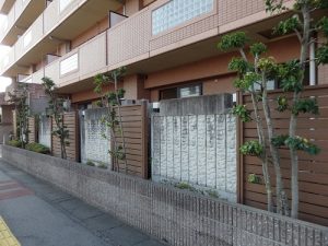 人通りの多い場所にあるマンションなので、歩行の妨げになる枝や葉を丁寧に剪定します。