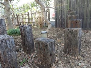 草や枝を処理し、伐採してみると、おしゃれな枕木を発見!!